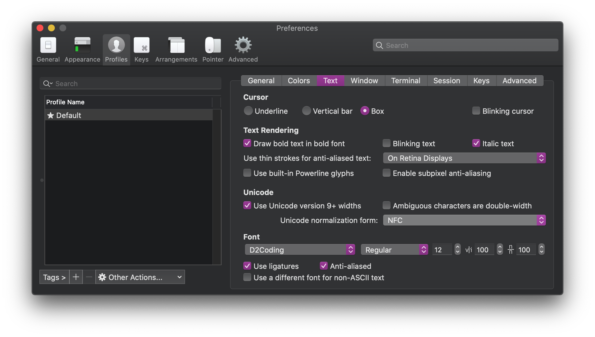 어쨌든 iTerm 환경설정에서 Profiles → Text → Unicode → Unicode normalization form이 "None"으로 되어있을텐데, NFC로 변경하면 해결된다.